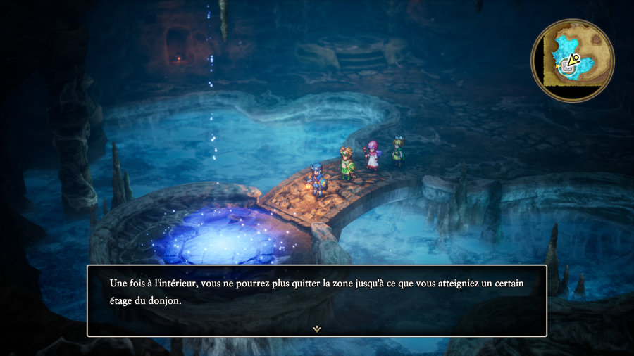 Pour accéder à ce donjon, vous devrez avoir terminé une première fois le jeu pour accéder au post-game et avoir obtenu les septs fragments du souvenir demandée par une fée dans le Palais des fées. Une fois dans cette caverne, activez la difficulté "Quête du dragonnet" et enchainez les combats grâce à l'aptitude "Sifflet". Cette technique sera particulièrement utile si vous souhaitez booster votre équipe dans le but de vaincre Xenlon est un minimum de tours. Encore une fois, nous vous conseillons tout de même de ne pas abuser de cette technique pour garder le plaisir de jeu intacte.