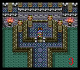 E2 : Allez à l’Est pour trouver une Leaf of the World Tree. Longez le rebord de droite et vous trouverez une pièce secrète au bout, contenant une Small Medal, un Dragon Killer et une Nut of Life. Revenez à l’entrée de l’étage et passez par la grande porte au Nord. Vous arriverez da sue grade salle avec 4 escaliers : m ontez celui au Nord-ouest .