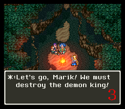 Avant de commencer la partie, on vous demandera de nommer votre héros. Lorsque le jeu commence, votre héros est endormi au mileu d’une clairière, une jeune femme à côté de lui. Lorsque vous vous réveillerez, elle vous demandera si vous avez bien dormi (1). A ce moment là, un homme, un peu punk, arrive, sautant de rebords en rebords (2). Il vous annonce qu’il est temps d’aller détruire Mudo (3).