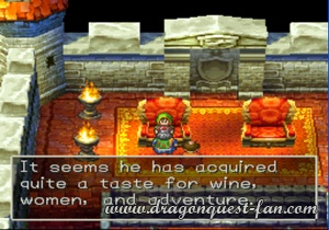 E1: A peine arrivé en haut des escaliers, vous ferez la connaissance du roi Burns, qui semble assez préoccupé pour le moment. Le ministre arrivera alors pour le calmer, sans succès. Le roi vous remarquera alors et vous guidera jusqu'à la salle du trône.