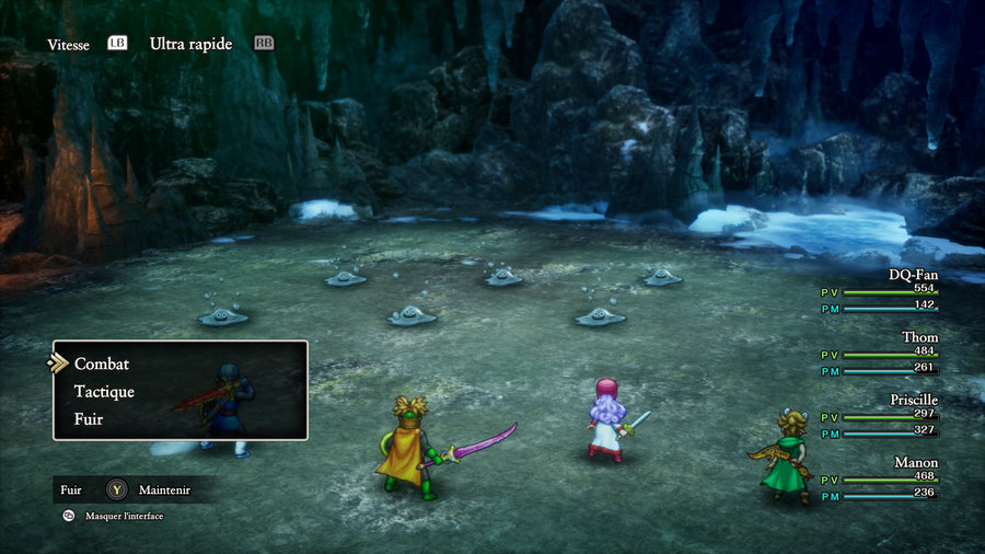 Pour accéder à ce donjon, vous devrez avoir terminé une première fois le jeu pour accéder au post-game et avoir obtenu les septs fragments du souvenir demandée par une fée dans le Palais des fées. Une fois dans cette caverne, activez la difficulté "Quête du dragonnet" et enchainez les combats grâce à l'aptitude "Sifflet". Cette technique sera particulièrement utile si vous souhaitez booster votre équipe dans le but de vaincre Xenlon est un minimum de tours. Encore une fois, nous vous conseillons tout de même de ne pas abuser de cette technique pour garder le plaisir de jeu intacte.
