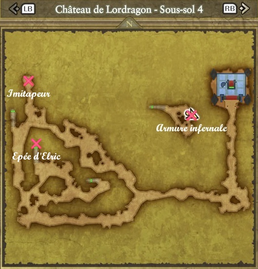 Vous trouverez ci-dessous le détail des trésors cachés dans les différents étages. Si vous souhaitez écourter votre visite, prenez tout de même le temps d'aller chercher l'épée d'Elric qui se trouve au bout des escaliers centre-ouest du quatrième sous-sol.
