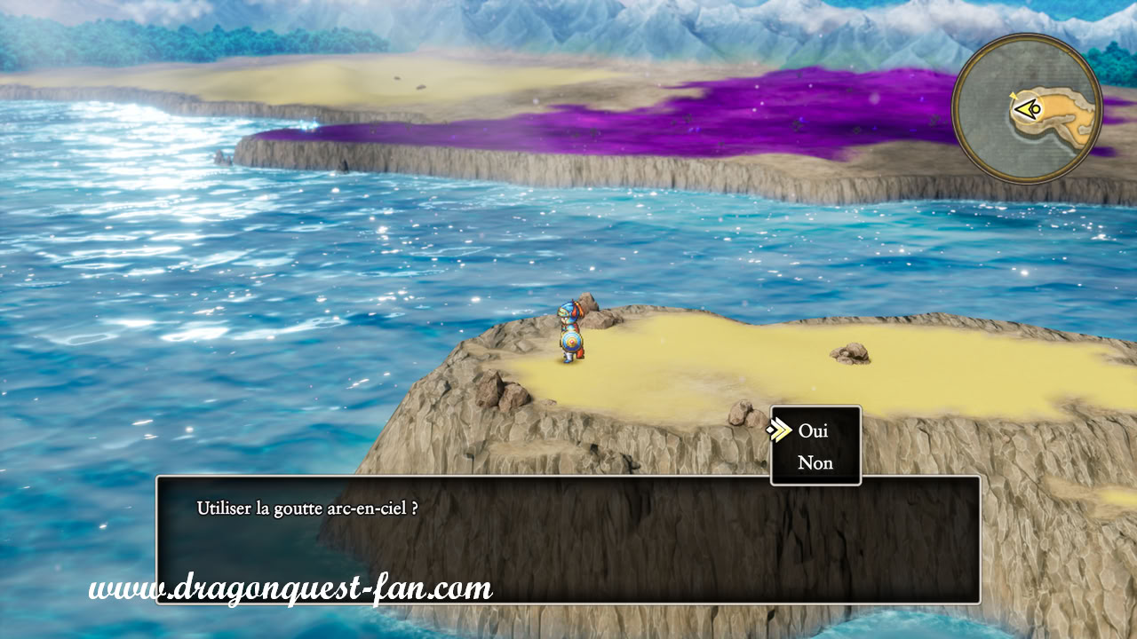 La goutte arc-en-ciel en votre possession, vous pouvez maintenant ouvrir le chemin vers le palais de Lordragon. Pour cela, rendez-vous au cap qui s'étire à l'ouest de Rimuldar et utilisez la goutte arc-en-ciel. Traversez ensuite le pont de lumière ainsi créé et entrez dans le repaire de Lordragon.