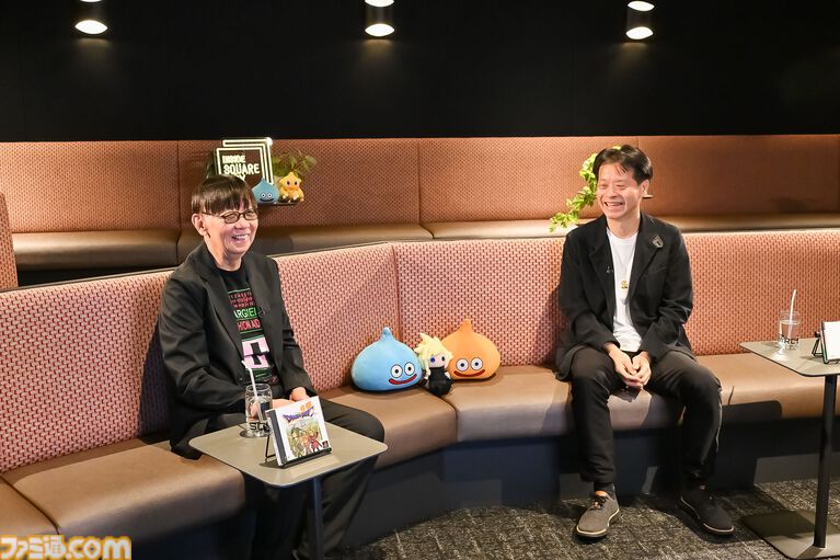 Kitase : Pour ma part, c'est en jouant aux jeux de M. Horii que j'ai eu envie d'entrer dans cette industrie. À l'époque de Dragon Quest, j'étais étudiant. Pour la sortie de Dragon Quest III, je me souviens avoir fait tout le tour d'une grande enseigne d'électronique à Shinjuku pour faire la queue. Je suis arrivé par le premier train le jour de la sortie.