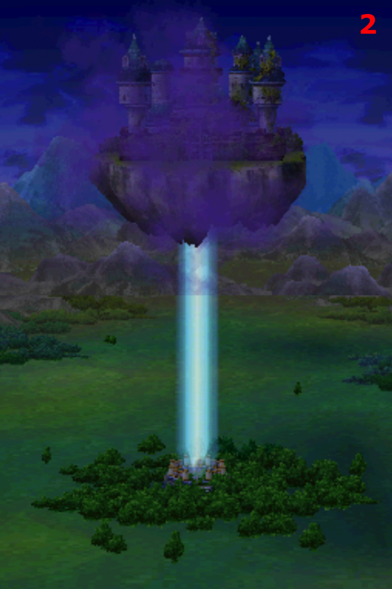 Une fois à l’intérieur du sanctuaire, il va vous falloir résoudre une petite énigme pas bien méchante. Il vous suffit simplement de modifier les symboles au sol afin d’obtenir la combinaison suivante : soleil au nord, cœur au sud, croix à l’est, éclair à l’ouest. Vous serez alors aspiré par un... eh bien, oui, par un château volant, tout à fait (2). Sauf qu’il ne s’agit pas uniquement d’un simple tas de briques, mais également d’un grand méchant boss !