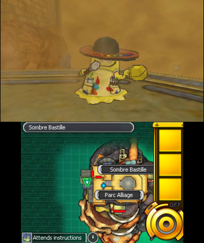 Continuez vers la gauche pour atteindre l'arène centrale au bout de laquelle se trouve un coffre contenant trois sacs de Simpletiol. Retournez sur vos pas et empruntez les escaliers qui descendent. Avant d'entrer à nouveau dans la bastille, localisez une boîte furtive contenant le frère Jaune.