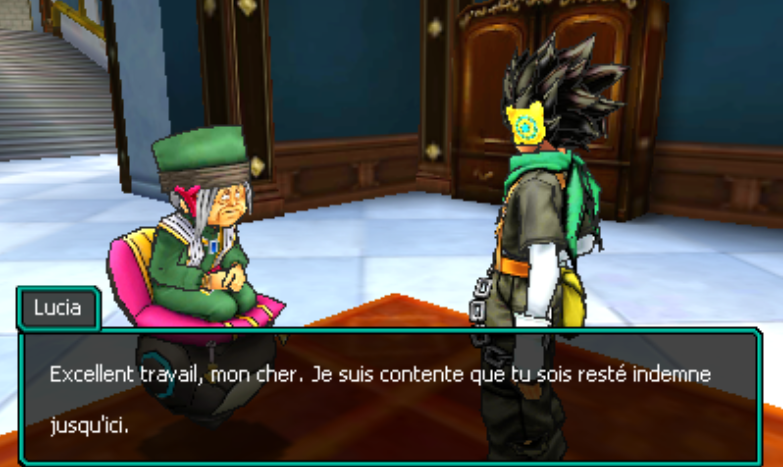 A la sortie, vous êtes rejoint par la vieille femme que vous avez déjà vu dans vos images du passé, et qui n'est nulle autre que... Lucia ! Le chef de la résistance est ravie de vous revoir et vous explique qu'elle a pour projet de faire exploser la machine qui corrompt les monstres grâce au ténérium. Lucia vous dit de la rejoindre dans une chambre du 4ème étage, mais vous devez passer par les toits pour éviter Itabre. Empruntez l'escalier montant et la porte au bout du couloir.