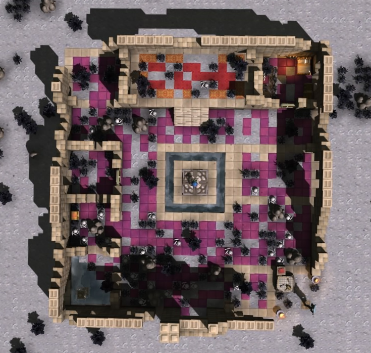 Pour ces trois quêtes, vous remarquerez qu’au sol est présent un vague marquage qui vous indique un agencement pour les salles que vous devrez ou pourrez construire, mais vous n’êtes pas obligés de suivre ce marquage.